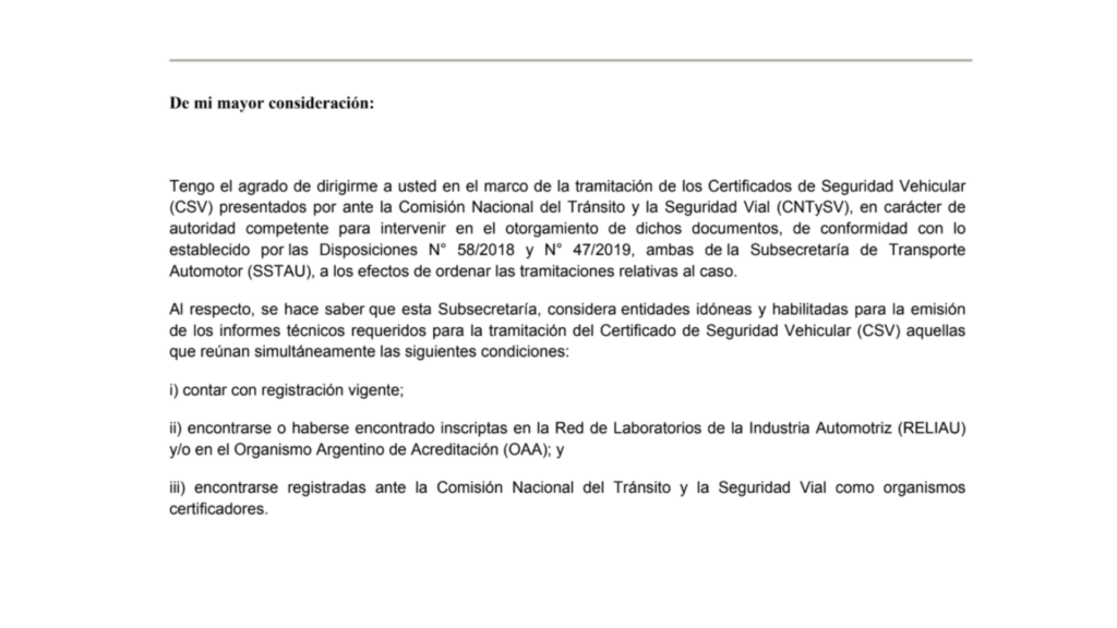 Esta validación se da en el marco de las gestiones ante la Comisión Nacional del Tránsito y la Seguridad Vial (CNTySV), bajo el cumplimiento estricto de las Disposiciones N° 58/2018 y N° 47/2019.